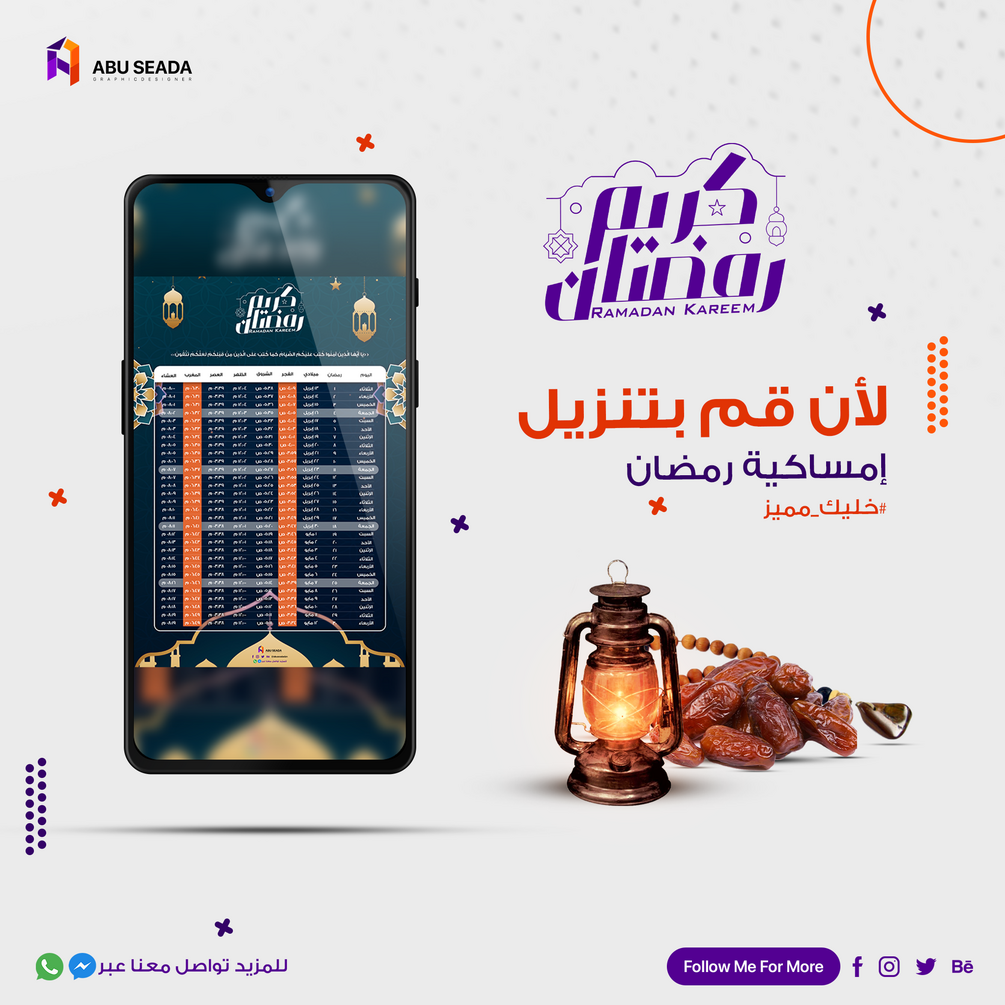 تصميم إمساكية رمضانية لتعريف مواقيت الصلاه خلال الشهر ..